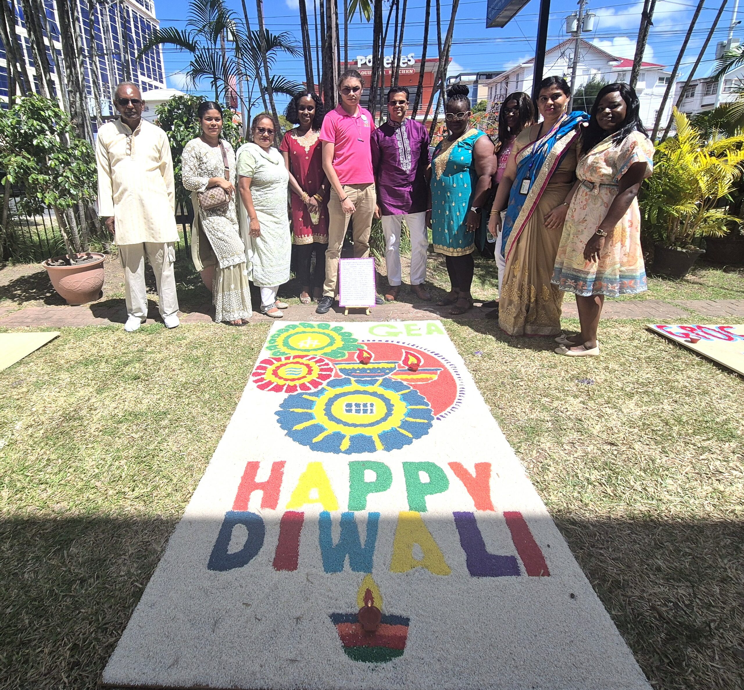 On Friday, team members from the Guyana Energy Agency (GEA) proudly joined agencies under the purview of the Office of the Prime Minister (OPM) – Guyana for a Rangoli Competition.