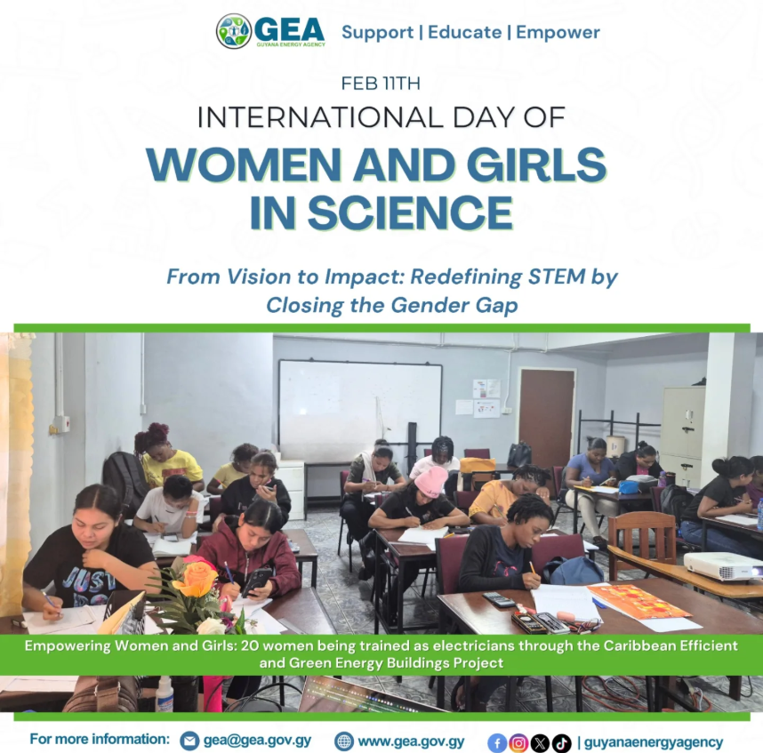 The Guyana Energy Agency (GEA) joins the global community in celebrating the remarkable achievements of women and girls in science who inspire future generations and pave the way for innovation, advancing knowledge, discovery, and a more sustainable, low-carbon future. “We must ensure that every girl can imagine a future in STEM, and that every woman can thrive in her scientific career.” – UN Secretary-General Antรณnio Guterres Happy International Day of Women and Girls in Science!…
